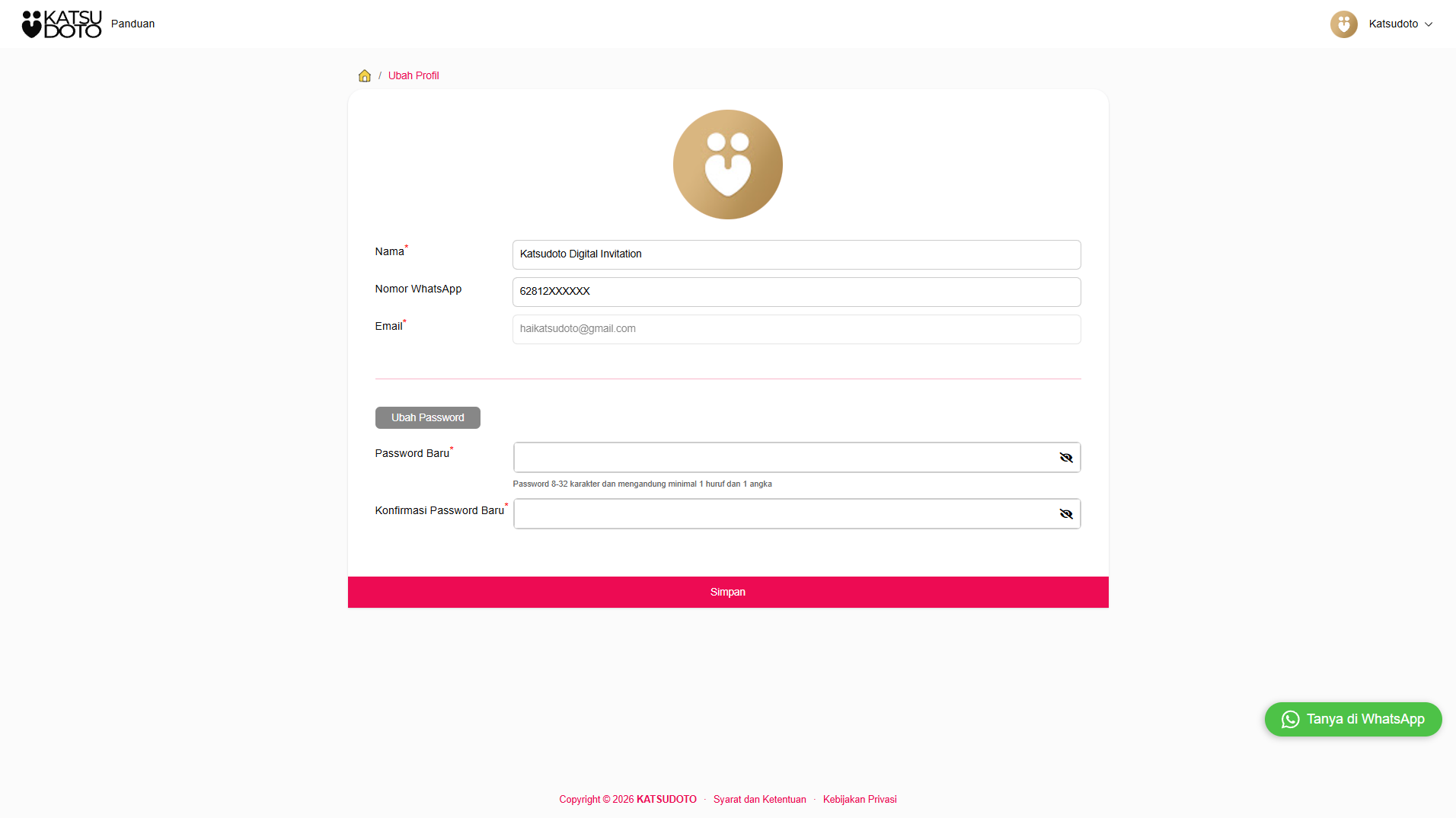 Ubah foto profile, nama, dan password mu melalui menu ini. Dibawah ini tampilan halaman ubah profile.